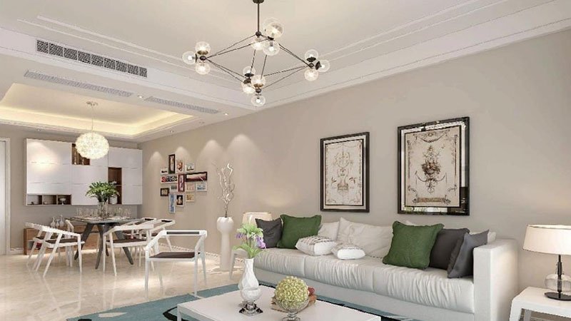 La salida central de aire acondicionado se ensambla mediante quillas de cobertura de 50X30, quillas laterales, quillas angulares en forma de L, complementos de cobertura laterales, fijaciones, conectores giratorios y conectores de cobertura superior.